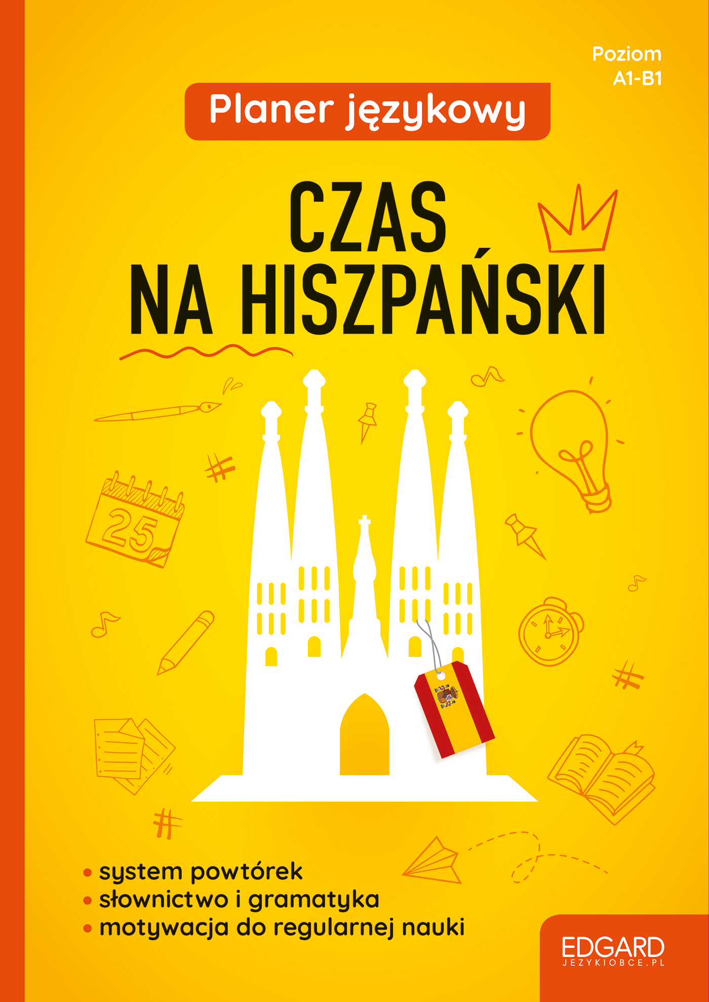 Planer językowy. Czas na hiszpański to wyjątkowa propozycja dla osób, które chcą połączyć naukę hiszpańskiego z codziennym planowaniem, inspirowaniem i realizacją celów. Wykorzystanie metody wiecznego kalendarza pozwala rozpocząć korzystanie z niego w dowolnym momencie, bez konieczności czekania na konkretną datę. Materiał dostosowany jest do początkujących użytkowników języka hiszpańskiego, na poziomie A2-B1, szukających motywacji, natchnienia i pomysłów do dalszej nauki. Już dzisiaj rozpocznij rok regularnej nauki języka hiszpańskiego! Skończ z wymówkami i nie czekaj na nowy tydzień, rok czy specjalną okazję. Ucz się nowego słownictwa i gramatyki oraz ćwicz pamięć w potrójnym systemie powtórek i sprawdzaj wiedzę w testach podsumowujących materiał z kilku tygodni. Nauka wejdzie ci w nawyk i szybko zauważysz pozytywne rezultaty swoich działań. Podział na małe porcje materiału przeznaczone do codziennej nauki sprzyja przyswajaniu materiału i szybszemu zapamiętywaniu. Podręczny format ułatwia korzystanie z planera w każdej wolnej chwili – w drodze do szkoły czy pracy, w domu, w podróży – można go zabrać ze sobą wszędzie. Kalendarz z podziałem tygodniowym i miesięcznym świetnie sprawdzi się również do prywatnego planowania. Dostosuj planer do własnych potrzeb w strefie wolnej twórczości - pisz pamiętnik, opowiadania i rysuj mapy myśli. Korzystaj ze strefy geograficzno-kulturowej – zbieraj inspiracje, zapisuj ciekawostki oraz terminy spotkań. Sprawdź nowoczesną metodę nauki, motywuj się, realizuj językowe cele krok po kroku i obserwuj efekty! Planer językowy. Czas na hiszpański to: nauka języka na poziomie A2-B1 roczny plan językowy możliwość rozpoczęcia nauki w dowolnym momencie podział na układ tygodniowy i miesięczny słownictwo i gramatyka potrójny system powtórek testy sprawdzające znajomość materiału cytaty i hasła motywujące strefa wolnej twórczości (pisz pamiętnik, opowiadania, rysuj mapy myśli) strefa geograficzno-kulturowa (zapisuj ciekawostki, zbieraj inspiracje) pomoc w określeniu celów językowych i realizacji
