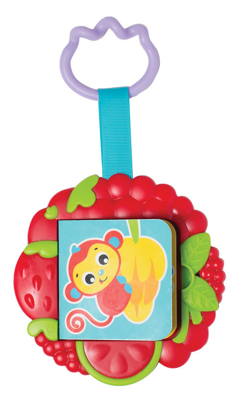KSIĄŻECZKA NA CZAS ZĄBKOWANIA dzięki miękko zakończonym krawędziom doskonale się sprawdzi w tym trudnym dla dziecka okresie rozwoju. Umieszczona w środku książeczka z kolorowymi obrazkami zaciekawi dziecko i pobudzi jego wyobraźnię. Za pomocą funkcjonalnego klipa książeczkę mozna zabrać wszędzie ze sobą doczepiając ją do wózka, gondoli czy łóżeczka. Materiały z jakich została wykonana nie posiadają BPA.Cechy:- Książeczka o zróżnicowanej fakturze materiałów- Miękkie końcówki, idealne do gryzienia- Kolorowe postaci