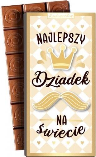 Czekolada prezentowa ""Dzień Babci i Dziadka"" - jak każda czekolada Kukartka - jest opakowana w ozdobny kartonik i zawiera polską mleczną czekoladę o masie 100 gram. Cechy szczególne: - piękne opakowanie - najwyższa jakość wykonania - super teksty Kukartka - 100% polska produkcja - pełnowymiarowa czekolada 100 g - wymiary opakowania 17x 8 x 1cm - warunki przechowywania: temperatura 12C-18C, wilgotność względna poniżej 75% Czekolada mleczna.