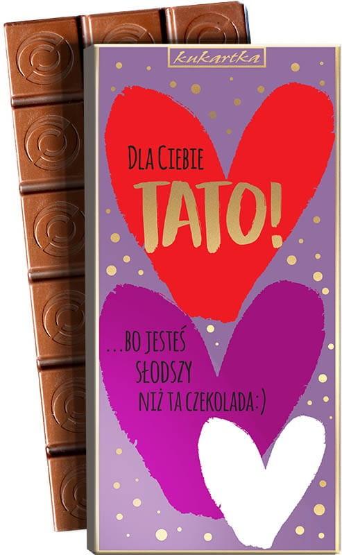Czekolada prezentowa "Dzień Mamy i Taty" - jak każda czekolada Kukartka - jest opakowana w ozdobny kartonik i zawiera polską mleczną czekoladę 100 gram. Cechy szczególne: - piękne opakowanie - najwyższa jakość wykonania - super teksty Kukartka - 100% polska produkcja - pełnowymiarowa czekolada 100 g - wymiary opakowania 17 x 8 x 1cm - warunki przechowywania: temperatura 12°C-18°C, wilgotność względna poniżej 75% Czekolada mleczna SKŁADNIKI: cukier, tłuszcz kakaowy, miazga kakaowa, mleko w proszku pełne, mleko w proszku odtłuszczone, tłuszcz roślinny, serwatka w proszku (z mleka), emulgatory: lecytyny (z soi) i E 476, aromat (wanilia). Masa kakaowa minimum 30%. Oprócz tłuszczu kakaowego zawiera tłuszcze roślinne. Zawiera mleko i soję. Może zawierać gluten, orzechy arachidowe i inne orzechy.