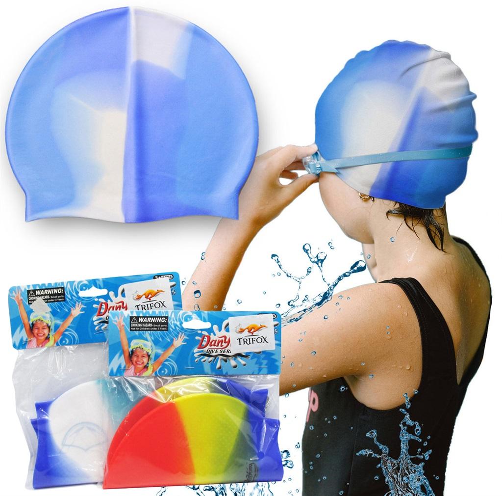 Czepek w tęczowych kolorach w uniwersalnym rozmiarze.