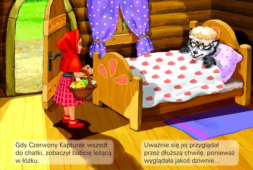 Książka dla dzieci, które zaczynają samodzielnie czytać. Krótkie zdania i duże litery ułatwiają lekturę. Bogate, całostronicowe ilustracje przykuwają uwagę. Publikacja została stworzona dla dzieci, które uczą się czytać. Dlatego w narracji użyto prostych słów, a tekst podzielono na krótkie partie. Naukę ułatwia też odpowiednio duża czcionka. Proponowana adaptacja to skrócona wersja klasycznej baśni o Czerwonym Kapturku. Jest przyjazna, napisana współczesnym językiem, a jej akcja toczy się dynamicznie. Treść uzupełniają atrakcyjne ilustracje. Dzięki pytaniom zawartym na końcu książki rodzic może sprawdzić, czy dziecko zrozumiało treść baśni. Bajki czytajki Seria klasycznych opowieści dla dzieci, które zaczynają samodzielnie czytać. Duża czcionka, proste słowa i krótkie zdania zachęcają do lektury książki. Wciągająca fabuła i barwne ilustracje rozwijają wyobraźnię dziecka.