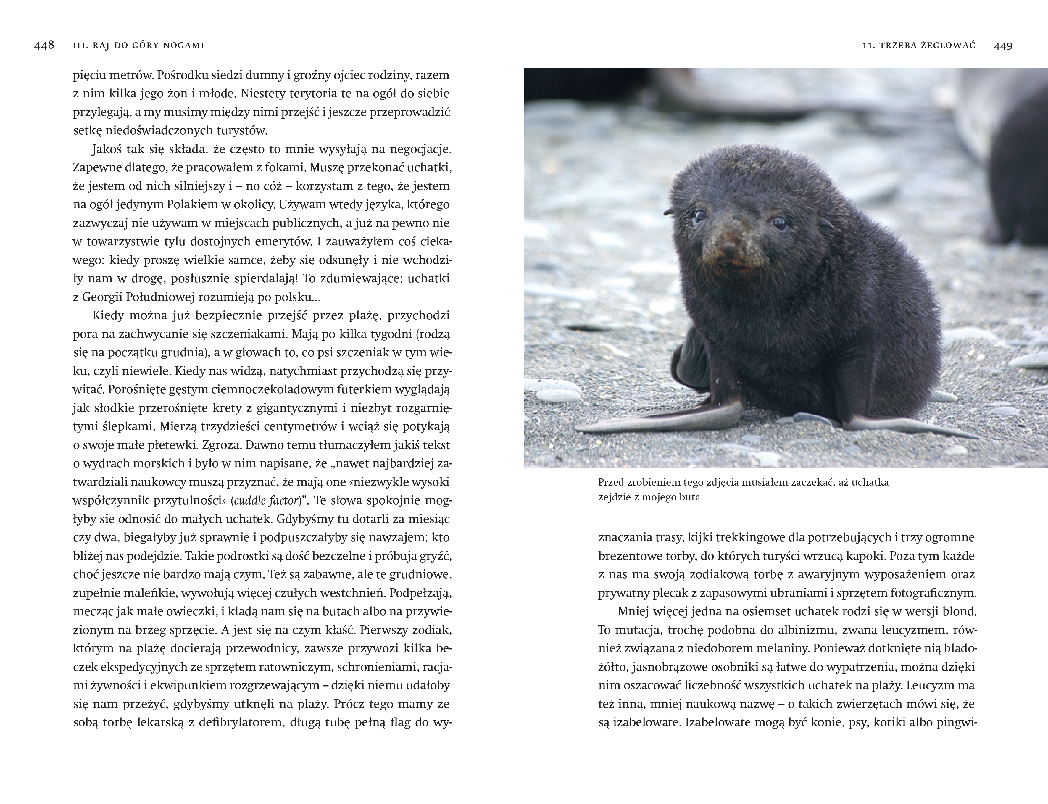 "Co nowego?" Znacie to pytanie zadawane przez znajomych. Jakby ciągła zmiana była niezbędnikiem szczęśliwego życia. Gdyby zapytać Mikołaja Golachowskiego, to od pierwszego wydania tej książki dekadę temu niewiele się u niego zmieniło. Nadal pływa po lodowatych wodach. Nadal obserwuje zwierzołki. I to są najlepsze wieści. Dla nas - czytelników - i dla regionów polarnych. Jeśli Arktyce i Antarktyce potrzeba ludzi, to właśnie takich jak Mikołaj. Ludzi, którzy mają do nich wielki szacunek, a jednocześnie potrafią je opisać z taką czułością, że samemu miałoby się ochotę zostać wyczochranym.