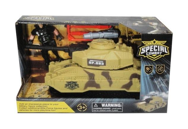 Plastikowy czołg dla dzieci. Urozmaici czas podczas zabaw militarnych. W zestawie czołg i żołnierz Zabawka przeznaczona dla dzieci od 3 lat. Podane wymiary są wymiarami opakowania. Zabawka zapakowana w kartonowe opakowanie z okienkiem.