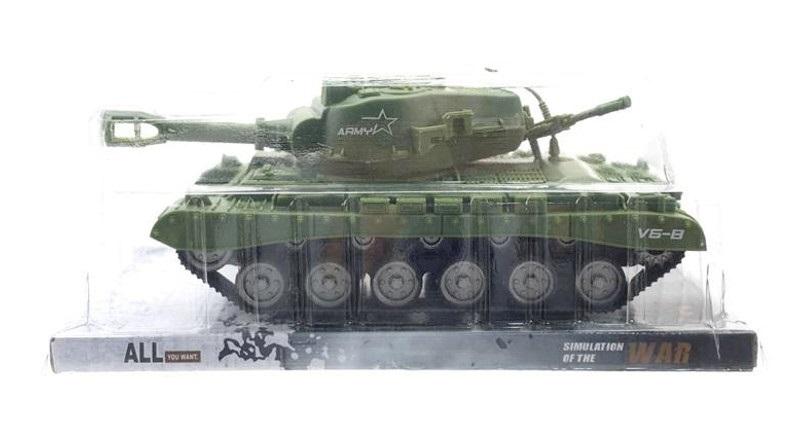 Plastikowy czołg dla dzieci. Urozmaici czas podczas zabaw militarnych. Podane wymiary są wymiarami opakowania. Zabawka zapakowana w kartonową podstawkę z przezroczystym kloszem.