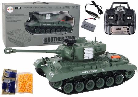 Czołg Leopard RC Zdalnie Sterowany Armata 1:18 Szary Nasz czołg w skali 1:18 to niezwykle szczegółowa zabawka militarna. Sterowanie czołgiem odbywa się za pomocą pilota, który umożliwia pełną kontrolę nad pojazdem. Jest zasilany akumulatorowo, co gwarantuje zabawę na długi czas. Zaprojektowany z ogromną dbałością o detale, ten czołg pokonuje przeszkody, obraca wieżę o 360 stopni i unosi lufę do 30 stopni. W zestawie znajdziesz kulki wodne do armaty. co pozwala na realne strzelanie. Oprócz tego, zestaw zawiera dwie bronie i żołnierza. Czołg wykonany jest z wysokiej jakości tworzywa, co gwarantuje trwałość i bezpieczną zabawę. To idealna zabawka dla młodych miłośników militariów, których zachwyci nie tylko funkcjonalność, ale i dokładność wykonania. Elementy zestawu: - czołg - pilot - akumulator - kabel do akumulatora - żołnierz - 2 bronie - kulki- 6 mm -kulki wodne - instrukcja Częstotliwość pilota: 2,4G Wymiary czołgu: 32 cm x 16 cm x 17 cm Wymiary pilota: 16,5 cm x 4 cm x 15 cm Wymiary opakowania: 53 cm x 28 cm x 28,5 cm Posiada certyfikat CE, ponadto jest zgodny z normą EN71. Zabawka przeznaczona jest dla dzieci powyżej 14 roku życia.