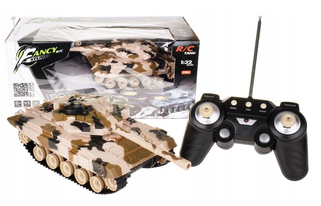 Zdalnie sterowany model czołgu w skali 1:32. W komplecie akumulator i ładowarka, Dla dzieci w wieku od 8 lat