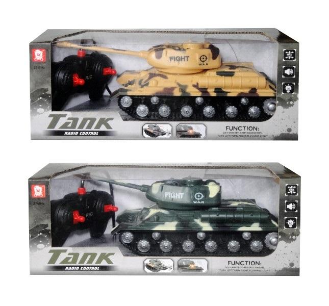 Plastikowy czołg dla dzieci sterowany pilotem. Świeci światełkiem, wydaje dźwięki oraz obraca działem i porusza się we wszystkich kierunkach (prawo, lewo, przód, tył). Produkt działa na baterie typu AA. Baterie nie znajdują się w zabawce. Zabawka występuje w kilku wersjach kolorystycznych, wybierana losowo. Cena dotyczy jednej sztuki. Produkt dla dzieci od 3 lat. Produkt zapakowany w kartonowe opakowanie z przezroczystym okienkiem Podane wymiary stanowią wymiar opakowania.