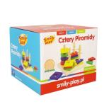 Cztery Piramidy to drewniana zabawka, która rozwija sprawność rączek, koordynację wzrokowo-ruchową, logiczne myślenie i wyobraźnię przestrzenną. Zabawka rozwija także kreatywność, wyostrza zmysł koncentracji oraz uczy rozróżniania kształtów i kolorów. Układanka składa się z 14 kolorowych elementów o różnych kształtach i kolorach. Na podstawie układanki trzeba umieścić odpowiednie kształty: trójkąty, koła, kwadraty lub prostokąty. Wiek: od 3 do 6 lat