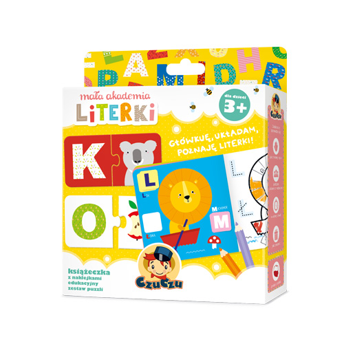 Mała akademia Literki to sposób na świetną zabawę, która jednocześnie: - wprowadza w świat liter - wspiera małą motorykę i precyzję - trenuje prawidłowy chwyt kredki - rozwija umiejętność logicznego myślenia. W zestawie: książeczka z naklejkami oraz edukacyjny zestaw puzzli. W serii Mała akademia dostępne są tytuły: Cyferki 3+ Przeciwieństwa 2+ Kształty 2+ Kolory 18m+ Zwierzątka 18m+