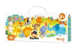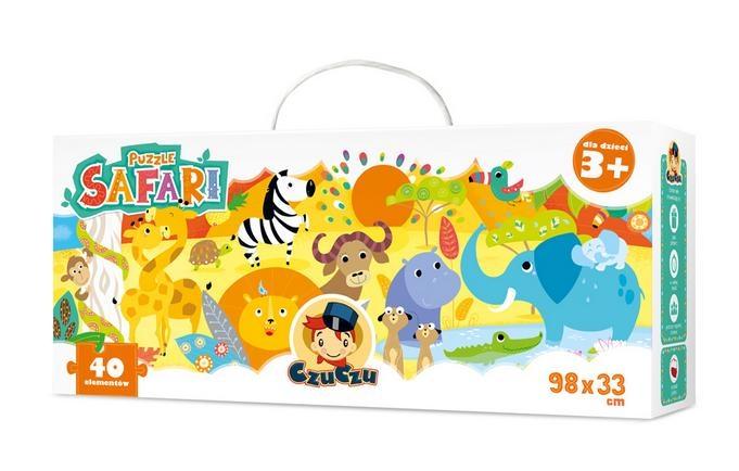 Na sawannie jest wesoło! Mnóstwo zwierząt psoci wkoło: Małpka, zebra, surykatki i żyrafy w śmieszne łatki. Słonik, hipcio i krokodyl brodzą w wodzie dla ochłody. Dołączcie do zabawy z CzuCzu i sympatycznymi przyjaciółmi na safari. Układanie puzzli przynosi wiele korzyści: ćwiczy umiejętność skupienia się oraz logicznego myślenia. Rozwija także zdolności manualne. To doskonały sposób na zabawę z dziećmi i wspólne poznawanie świata. Wymiar 40-elementowej układanki to 98x33 cm.