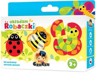 Bzyk! Bzyk! Co to za robaczki? Małe stworzonka bawią się na łące. Ułóżcie znane robaczki lub wymyślcie całkiem nowe! Zabawa w układanie puzzli rozwija zdolności manualne i spostrzegawczość. Jest świetnym sposobem na wspólną zabawę z maluchem. W zestawie znajdziemy 5 czteroelementowych układanek.