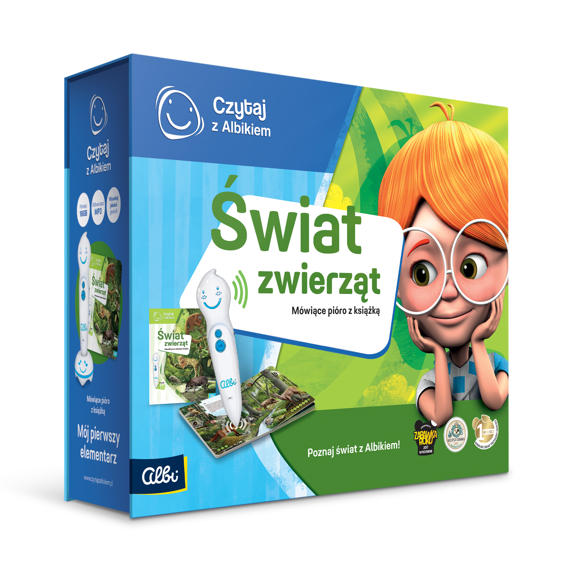 Zestaw zawiera pióro niezbędne do odczytywania wszystkich książek z kolekcji Albika oraz książkę Świat zwierząt, dedykowaną dzieciom od 5 roku życia.