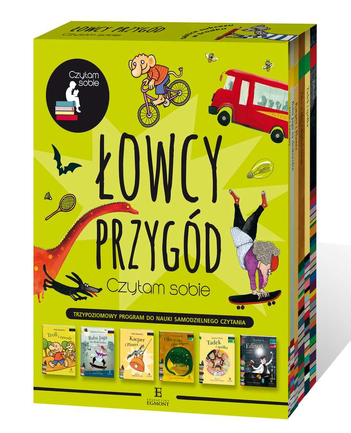 Specjalnie dla żądnych wrażeń wybraliśmy wyjątkowe książki, dzięki którym można przeżyć pasjonujące przygody, a nauka czytania stanie się prawdziwą przyjemnością. Czy można wygrać zawody sportowe z prawdziwym trollem? Co jeżeli spotkasz na swojej drodze Babę Jagę i czy diplodoki są naprawdę takie straszne? Dowiedz się co przeżyli nasi bohaterowie i jak radzili sobie kiedy wpadli w tarapaty. Z tymi książkami nauka czytania będzie prostsza z każdą przeczytaną stroną. W pakiecie Łowcy przygód znajdują się książki: Poziom 1: Troll i zawody Baba jaga na deskorolce Kacper i plaster Poziom 2: Oko w oko z diplodokiem Tadek i spółka Poziom 3: Edison. O wielkim wynalazcy