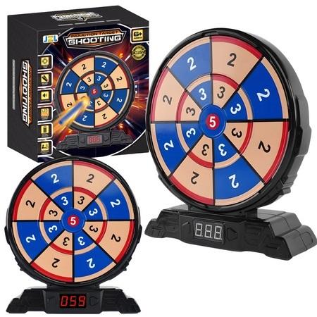 Zestaw zawiera specjalną tarczę z elektronicznym wyświetlaczem umieszczonym na dolnej części tarczy, który pełni funkcję monitorowania wyników. Każde trafienie w cel na tarczy jest rejestrowane, a zdobyte punkty wyświetlane są na ekranie. Dzięki temu dzieci będą wiedziały, ile punktów zdobyły.