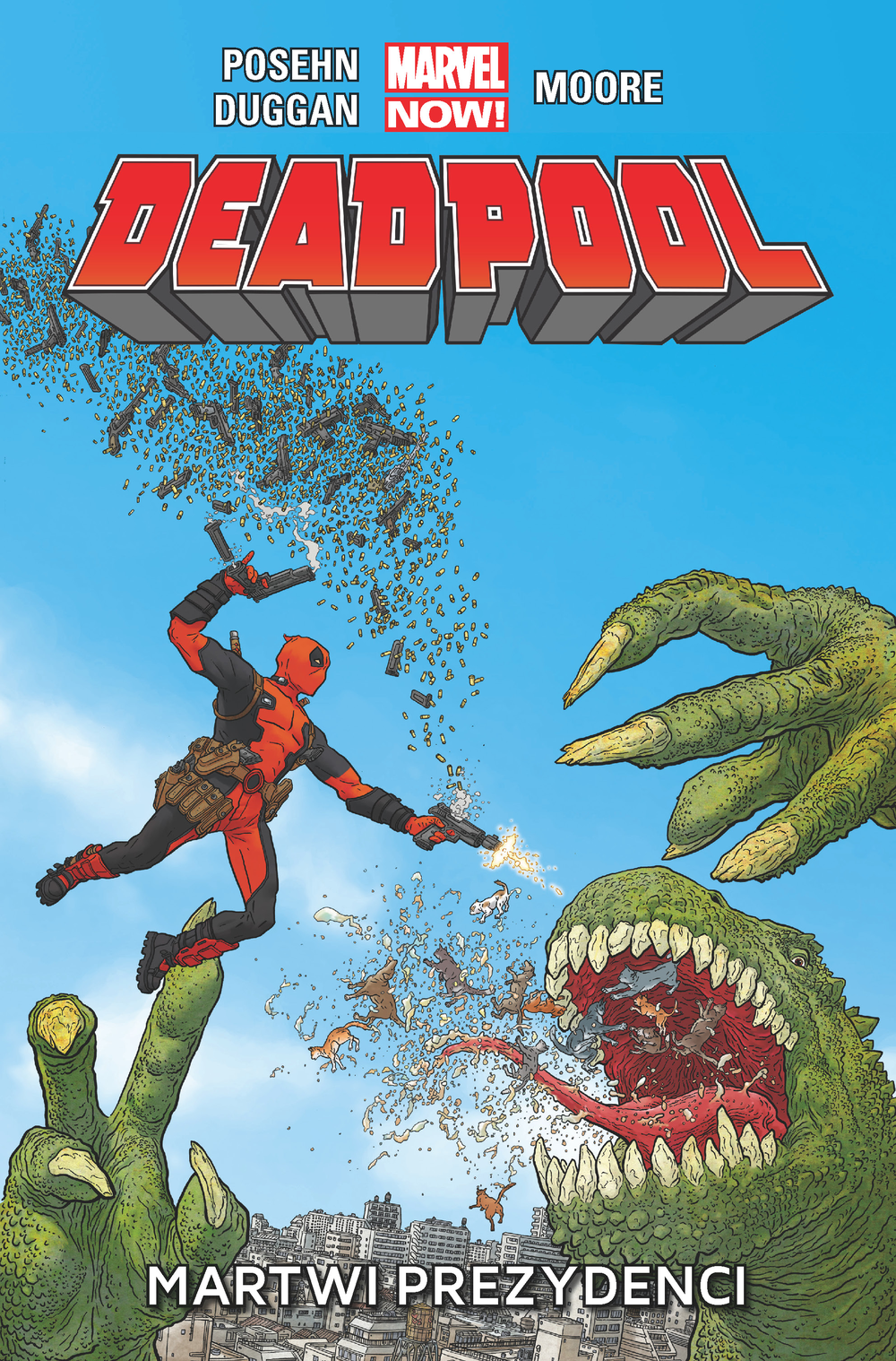 Deadpool to jeden z najpopularniejszych w ostatnich latach bohaterów komiksowych. Czy raczej antybohaterów, bo jego metody działania nie różnią się specjalnie od wyczynów najbrutalniejszych czarnych charakterów. Ten zabójca do wynajęcia jest praktycznie nieśmiertelny (jego organizm ma zdolność samoleczenia), dowcipny i nadzwyczaj kreatywny (w wymyślaniu sposobów unicestwiania przeciwników). W komiksie Martwi prezydenci Deadpool na zlecenie władz musi powstrzymać inwazję wskrzeszonych amerykańskich prezydentów, którzy mają zamiar zniszczyć swą dawną ojczyznę. Autorami albumu są: Brian Posehn (popularny amerykański komik znany z kina i telewizji), Gerry Duggan (Hulk, Nova, Hawkeye vs Deadpool) i Tony Moore (The Walking Dead, Punisher, Venom). Komiks ukazuje się równocześnie z filmową premierą przygód Deadpoola.