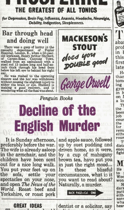 In these timeless and witty essays George Orwell explores the English love of reading about a good murder in the papers (and laments the passing of the heyday of the 'perfect' murder involving class, sex and poisoning), as well as unfolding his trenchant views on everything from boys' weeklies to naughty seaside postcards.