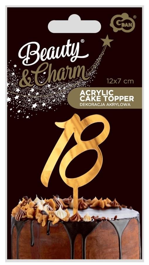 Dekoracja akrylowa na tort 18 urodziny, złota, 12x7 cm