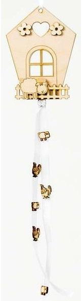 Drewniana ozdoba do zawieszenia w mieszkaniu, na drzwiach, wymiary 11 x 15 cm, długość 40 cm