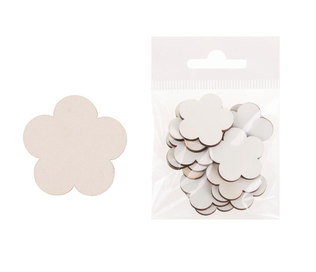 Drewniane kwiatki jako artykuł dekoracyjny idealnie nadają się do decoupage, scrapbookingu czy jako dekoracja opakowań prezentowych, pudełek, kartek świątecznych itp. Charakteryzuje je wysoki poziom wykonania dzięki laserowej obróbce materiału. Produkt jest bezpieczny dla ludzi oraz środowiska i w pełni ekologiczny. Średnica pojedynczego elementu ok 30mm. Zapakowane w woreczek z eurowieszakiem, który zawiera 12szt dużych kwiatków.