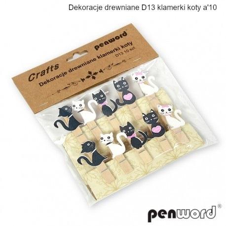 Opakowanie Dekoracja drewniana klamerki koty 10szt