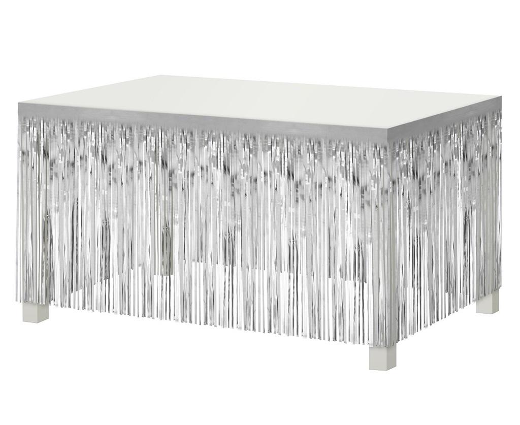 Dekoracja na brzeg stołu B&C, frędzle, srebrna, 80x300 cm