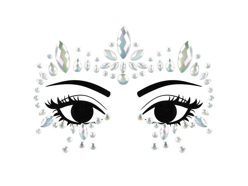 "Świecące w ciemności, samoprzylene kryształki do dekoracji twarzy, rozmiar zestawu ok. 15x9 cm. Produkt jednorazowego użytku. Kryształki łatwo przykleić do skóry twarzy dzięki samoprzylepnej warstwie. Nie nakładać na wrażliwą skórę lub oczy. Skład: akryl - 98%, PVC - 2%."