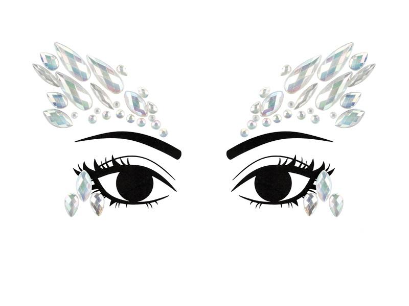 "Świecące w ciemności, samoprzylene kryształki do dekoracji twarzy, rozmiar zestawu ok. 14x8.5 cm. Produkt jednorazowego użytku. Kryształki łatwo przykleić do skóry twarzy dzięki samoprzylepnej warstwie. Nie nakładać na wrażliwą skórę lub oczy. Skład: akryl - 98%, PVC - 2%."