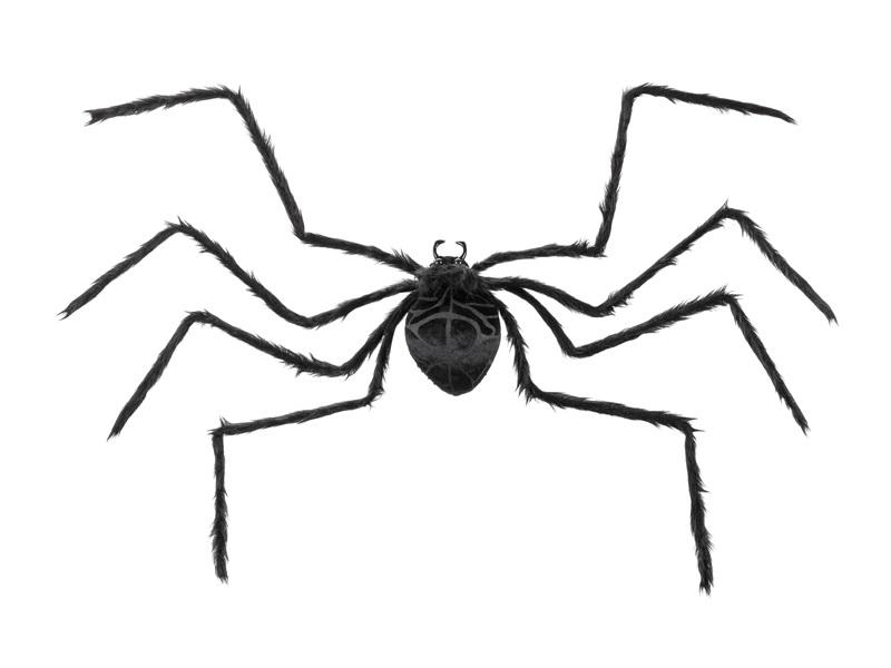 Dekoracja Pająk w kolorze czarnym, wymiary korpusu ok. 21.5 x 9 x 13 cm, długość nóg ok. 60 cm, przeznaczona do użytku wewnętrznego i zewnętrznego. Skład: PE - 62%, PP - 5%, Filc - 8%, poliester - 10%, żelazo - 15%.