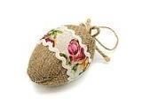 dekoracja - pisanka z juty w opasce koronkowej, 9x6,5cm. .