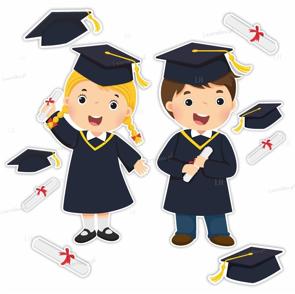 Zestaw składa się z 2x dużych dzieci, 4x birety, 4x "dyplomy" - idealne na uroczystość zakończenia roku w szkole lub przedszkolu.
