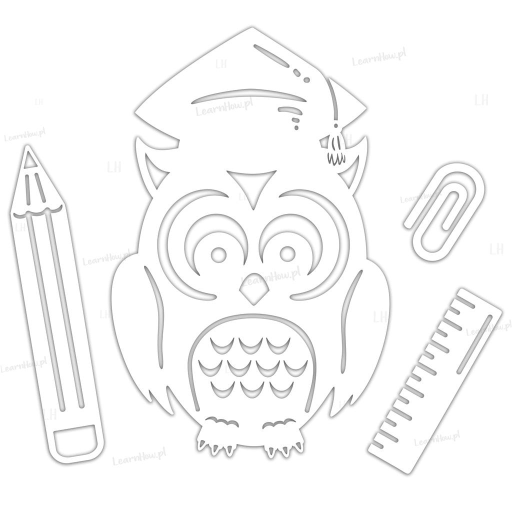 Zestaw składa się łącznie z 4 dużych ozdób - Duża Sowa w birecie, kredka, linijka i spinacz.