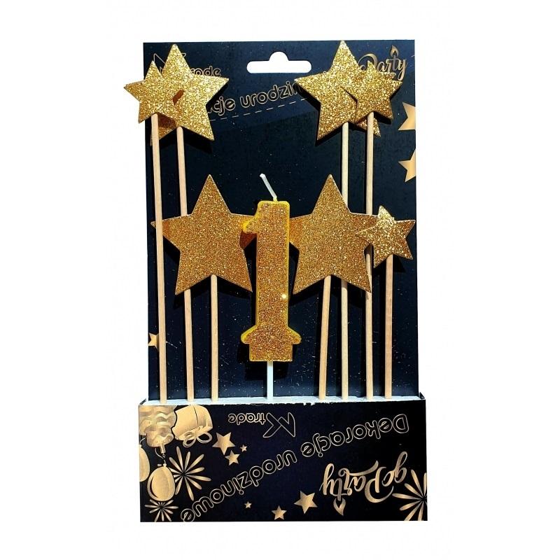 Opakowanie Dekoracja urodzinowa - świeczka i gwiazdy 8szt
