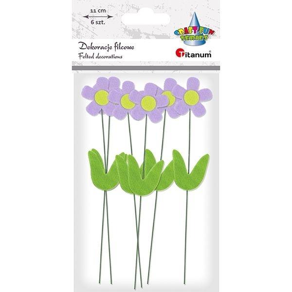 Dekoracje filcowe kwiaty 3D na druciku 25x130mm fioletowe 6szt.