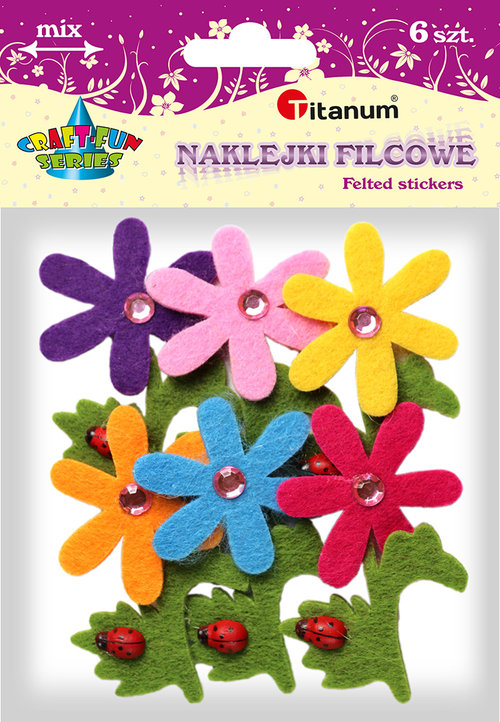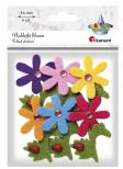 Naklejki filcowe, 3D, kwiatki z biedronkami, mix kolorów, 6 sztuk.