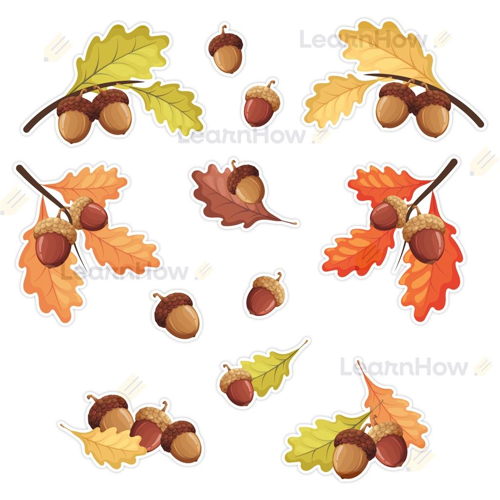 Zestaw składa się z 12 różnych żołędzi czy też gałązek - idealne do jesiennej dekoracji szkoły i przedszkola.