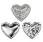 Dekoracje materiałowe serca PU 32x30mm 3 wzory: drobny brokat, duży brokat, gładkie srebrne 12szt.