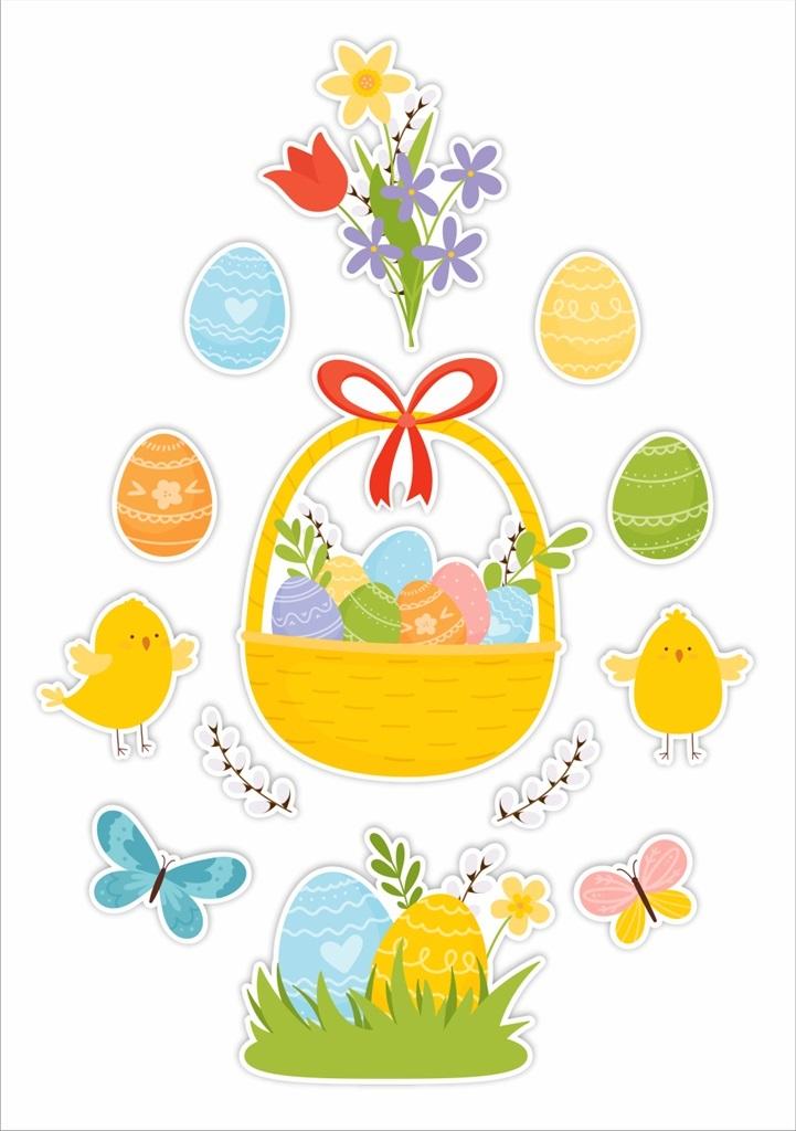 Zestaw składa się z 13 kolorowych elementów - idealne do Wielkanocnej dekoracji szkoły i przedszkola.