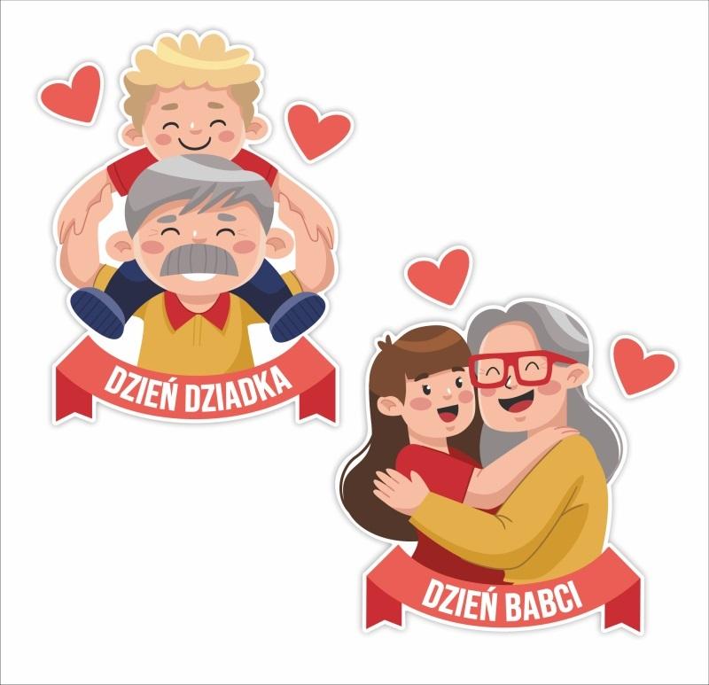 Zestaw składa się z 2 dużych elementów z babcią i dziadkiem oraz 4 serc - idealne szczególnie do szkoły i przedszkola.