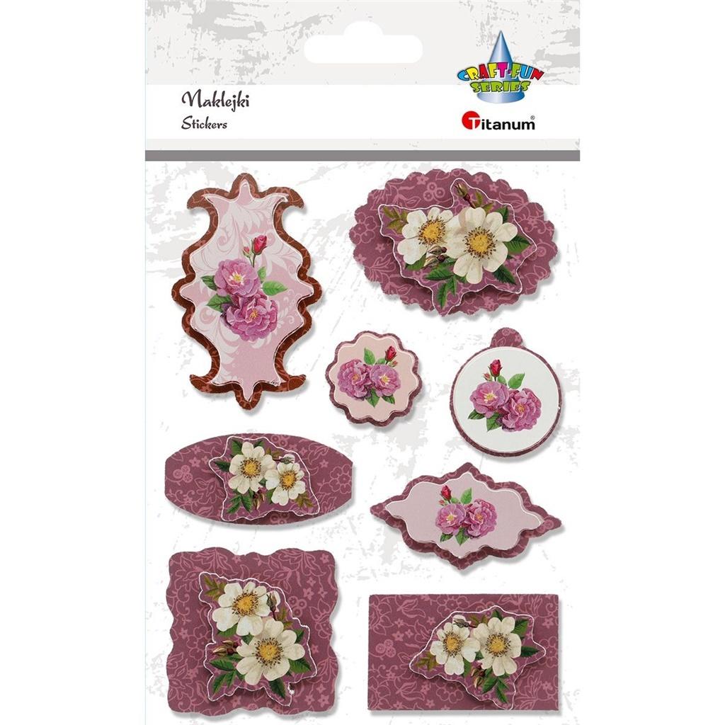 Dekoracje samoprzylepne papierowe 3D ramki (handmade) kwiaty fioletróż 8szt.