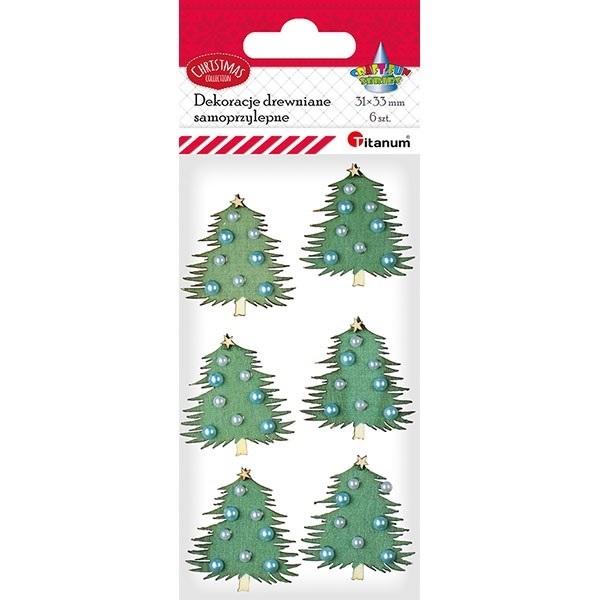 Dekoracje samoprzylepne drewniane 3D choinki 29x33mm 6szt.