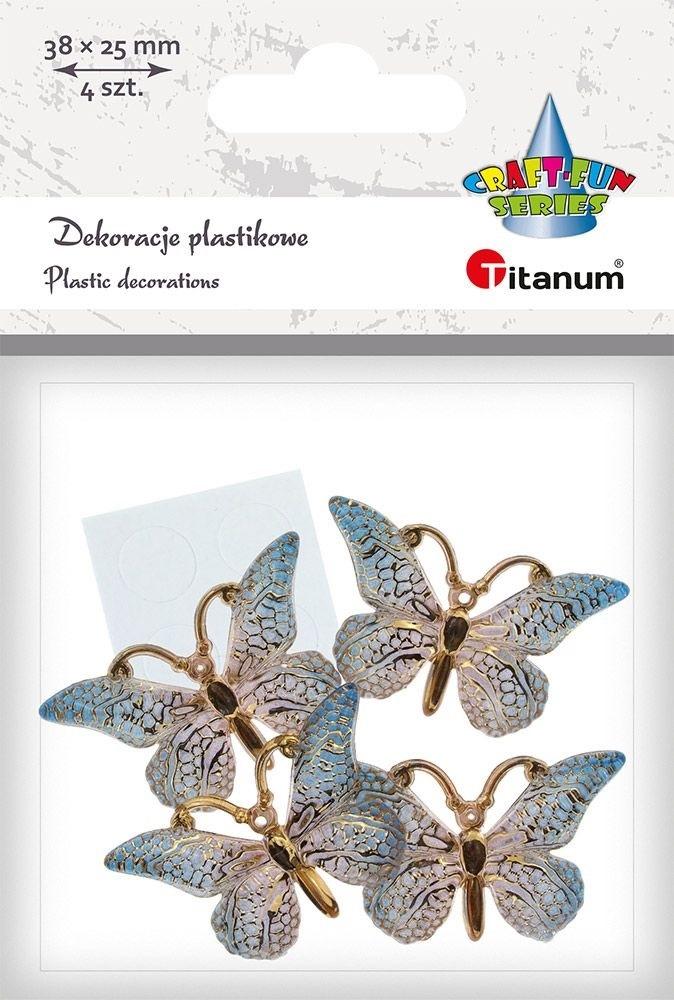 Dekoracje samoprzylepne plastikowe motyle 38x23mm niebiesko-złote 4szt.