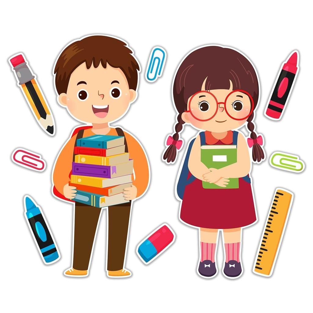 Zestaw składa się z 2x dużych dzieci oraz szkolne elementy - idealne na uroczystość rozpoczęcia roku w szkole lub przedszkolu.