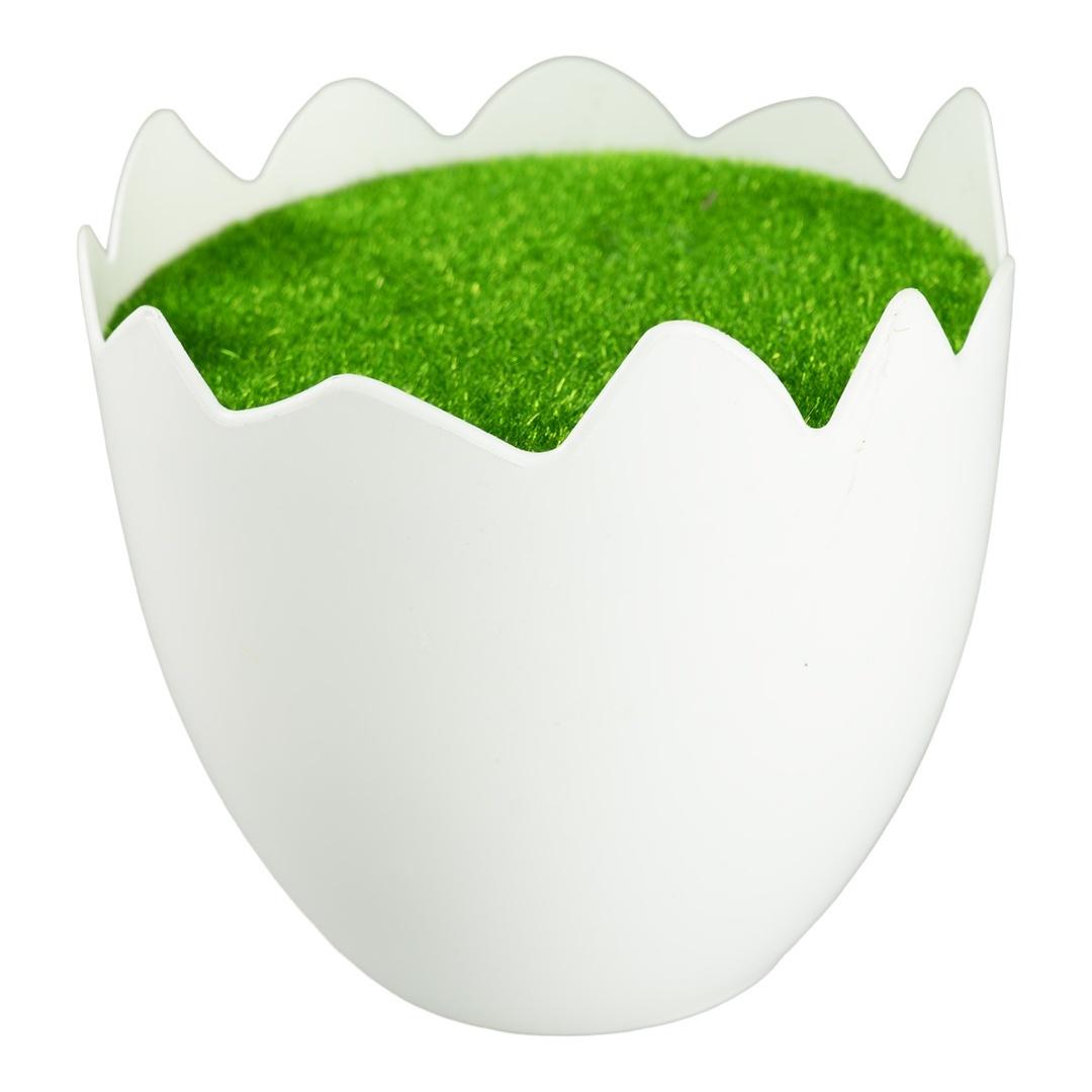 Dekoracyjna osłonka z wkładem styropianowym to subtelny i funkcjonalny element dekoracji wielkanocnych oraz wiosennych aranżacji. Klasyczna forma inspirowana skorupką jajka doskonale wpisuje się w świąteczny klimat, a neutralny kolor umożliwia łatwe dopasowanie do różnych stylów wnętrz. Wypełnienie ze styropianu imitujące zieloną trawkę stanowi idealną bazę do ekspozycji drobnych ozdób, figurek lub kompozycji florystycznych.