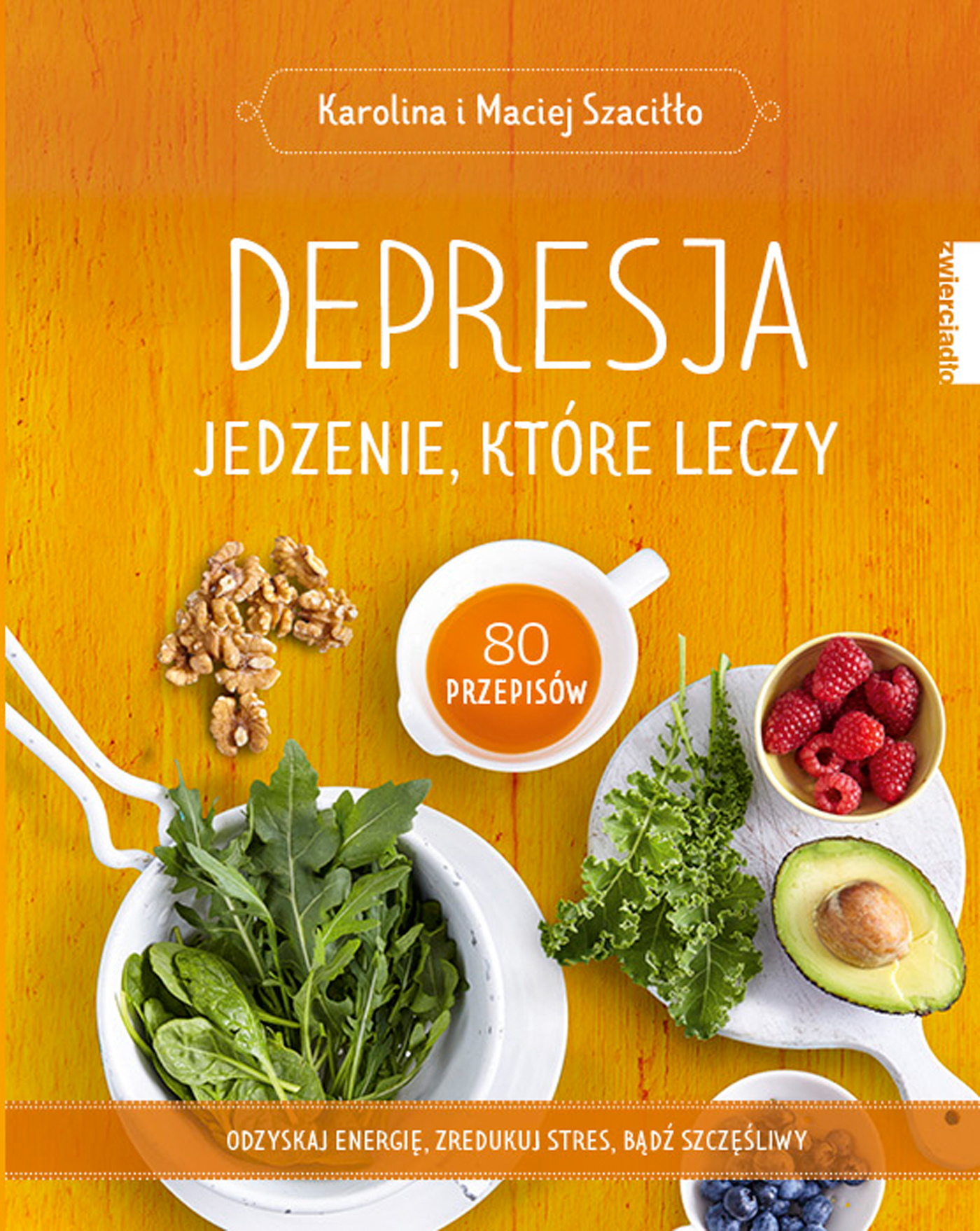 Jak wspomóc ciało i umysł, aby jak najdłużej cieszyć się zdrowiem i szczęściem? Depresja jest jedną z najczęściej występujących chorób na świecie. Według statystyk WHO w 2017 r. na świecie cierpiało na nią około 350 mln osób. Polskie statystyki mówią o 1,5 mln osób. Jak w naturalny sposób możemy zapobiegać depresji, jak wspomagać organizm w czasie choroby? Na te pytania odpowiadają Karolina i Maciej Szaciłło, autorzy książki. Korzystając z najstarszego systemu medycznego ajurwedy oraz współczesnej dietetyki, autorzy radzą w jaki sposób przeciwdziałać depresji, jak podnieść życiową energię oraz jak odróżnić depresję od okresowego spadku nastroju. W książce Depresja. Jedzenie, które leczy znajdziesz m.in.: 80 przepisów na główne posiłki i przekąski, a także kiszonki, mieszanki przypraw, naturalne suplementy oraz napoje podnoszące poziom energii książkę uzupełniają przykłady technik oddechowych, medytacji oraz zabiegów olejowych. Karolina i Maciej Szaciłło. Eksperci od zdrowego żywienia oraz ekologicznego trybu życia. Wspólnie prowadzą szkolenia oraz warsztaty zdrowego odżywania, a także medytacji. Są autorami popularnych poradników dietetycznych, m.in. Jedzenie, które leczy, Zdrowa tarczyca, Dieta Raw Food (wszystkie pozycje wydane przez Wydawnictwo Zwierciadło).