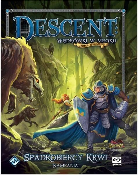 Spadkobiercy Krwi to nowa księga kampanii do drugiej edycji gry Descent: Wędrówki w mroku, grywalna w połączeniu z zestawem podstawowym. Księga kampanii oferuje trzydzieści dwa nowe spotkania, które opowiadają o historię o brawurowych bohaterach, którzy muszą powstrzymać wampirzycę Lady Elizę Farrow przed przejęciem władzy w krainie Saradyn. Jest to kampania w której znaczenie ma każdy wybór, a koniec jednego scenariusza będzie wpływał na kolejny. Ochroń prawowitego spadkobiercę i pokonaj siły mrocznego władcy!