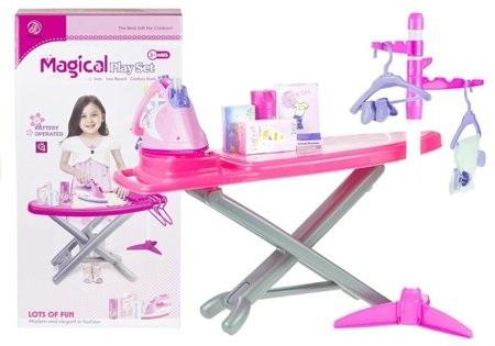 Deska do Prasowania Akcesoria Żelazko Wieszak Ten zestaw to idealny prezent dla małej gosposi. Małe dziewczynki często podpatrują obowiązki mamy. Bardzo chcą pomagać podczas prac domowych. Jedną z ulubionych czynności domowych dla młodych księżniczek jest prasowanie. Ten zestaw idealnie sprawdzi się w domu. Twoja pociecha będzie pracowała razem z Tobą jednocześnie dostarczając mnóstwo świetnej zabawy. Zestaw jest w 100% bezpieczny, wykonany z plastiku. Zestaw zawiera: - deskę do prasowania - żelazko - 2 wieszaki na wyprasowane ubrania - 4 spinacze - akcesoria do prasowania - materiał Żelazko zasilane jest bateriami, posiada efekty świetlne oraz dźwiekowe. Wymiary deski: - długość: 50cm - szerokość: 8cm - wysokość: 26cm Wymiary stojaka na wieszaki: - wysokość: 46 cm Wymiary żelazka: 20 cm x 11 cm x 10 cm