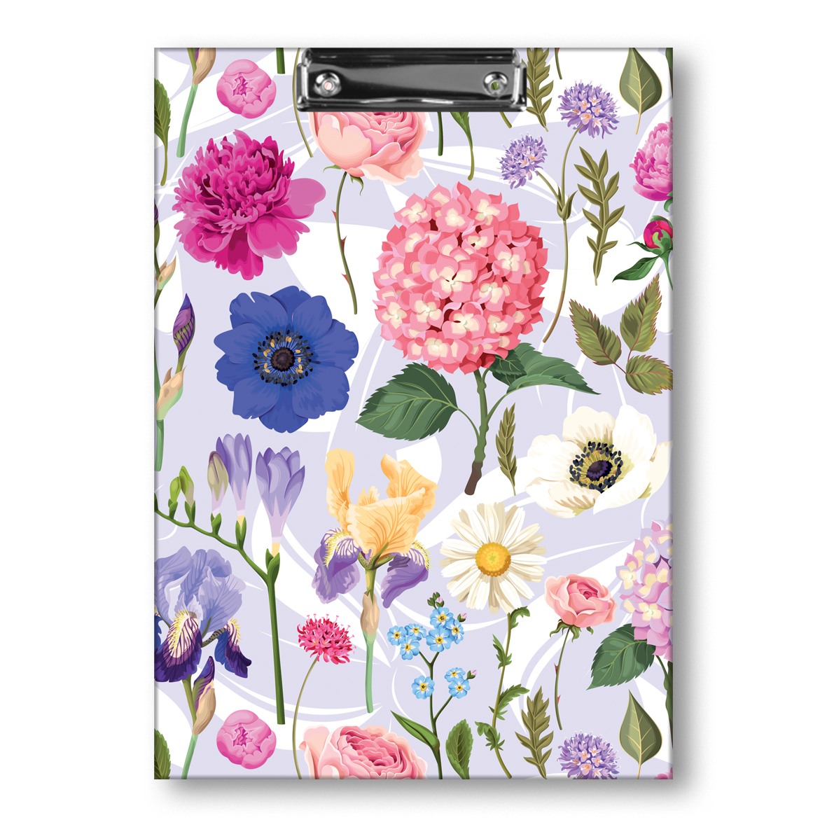 Opakowanie DESKA Z KLIPEM A4 T0125 KWIATY POLSKIE  HORTENSJA NA JASNYM TLE FOLIA MAT NIERYSUJĄCA