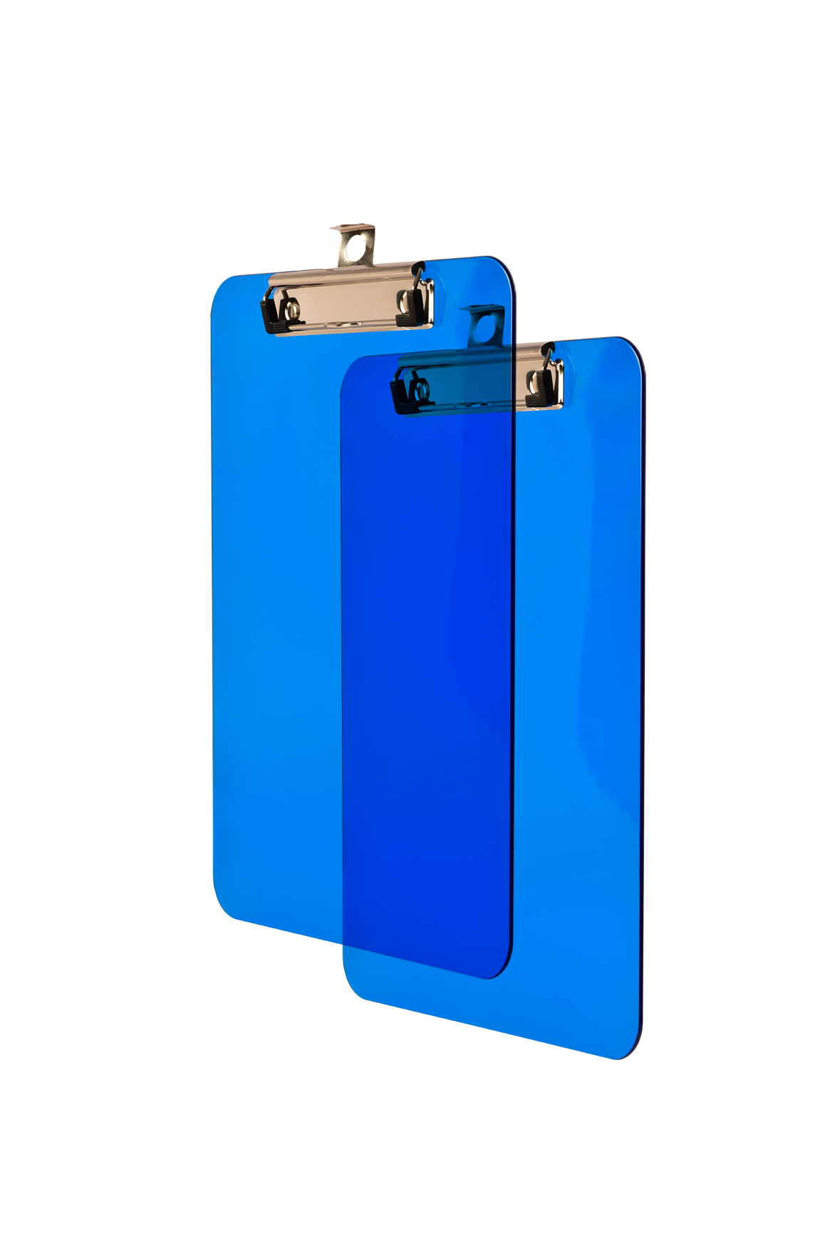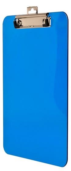 Deska z tworzywa (przezroczysta) z metalowym klipem A4. Wymiary: 225x315mm. Dostępna w trzech kolorach (czarny, niebieski, różowy). Opakowanie: folia 1 szt.