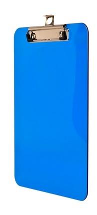 Deska z tworzywa (przezroczysta) z metalowym klipem A5. Wymiary:152x229mm. Dostępna w trzech kolorach (czarny, niebieski, różowy). Opakowanie: folia 1 szt.